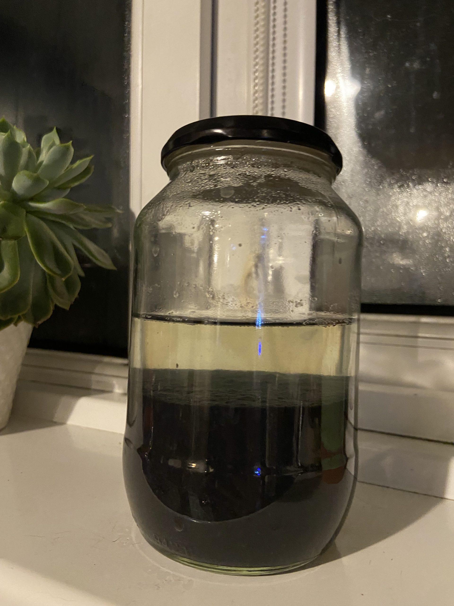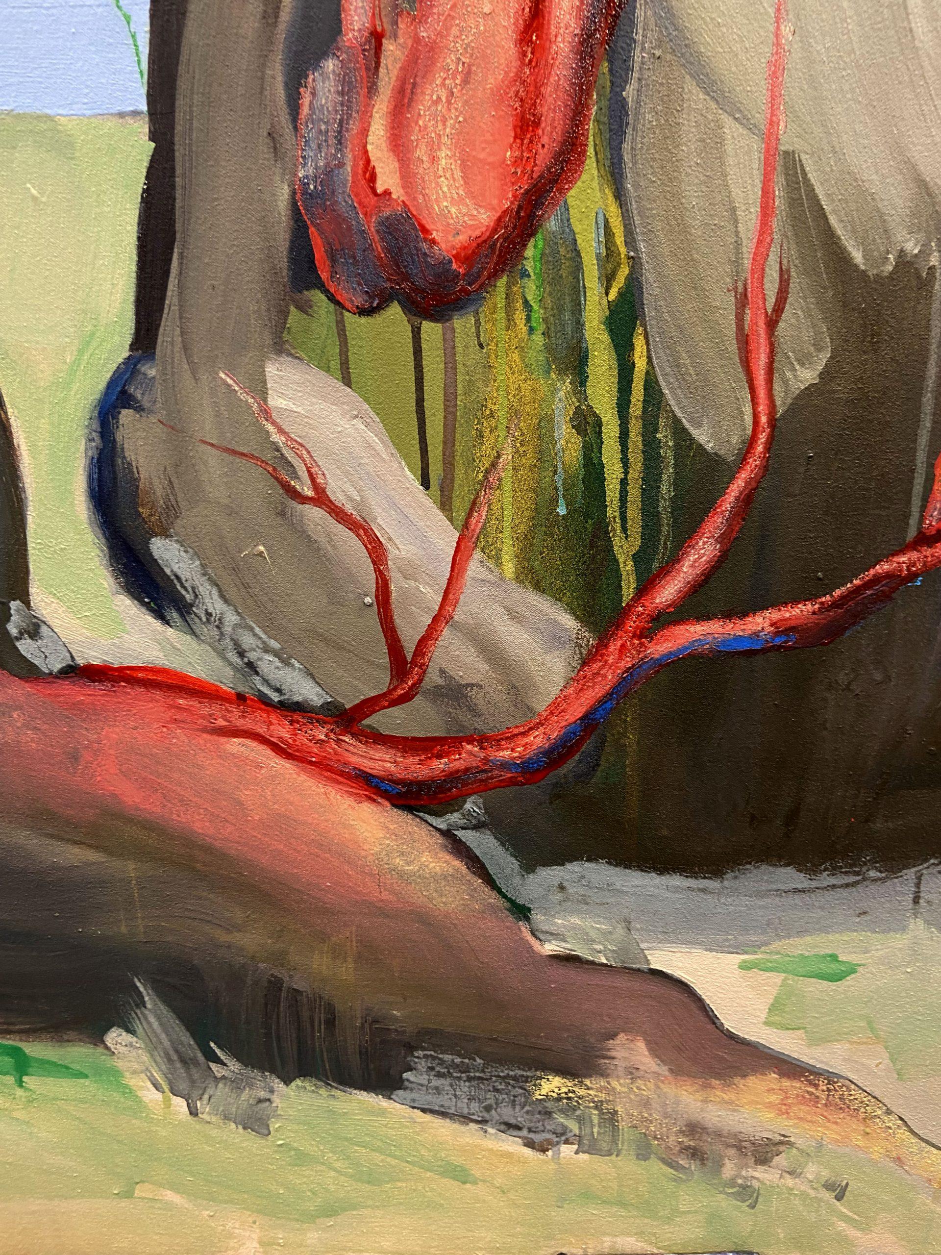 I dipped my brush into the leftover spiddle of sludge at the bottom of my jar and painted directly onto a painting I was working on. As the sludge dried, it turned an ashy grey.