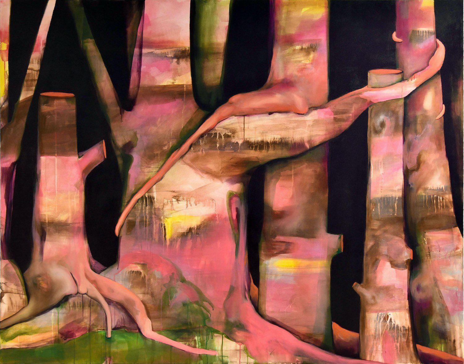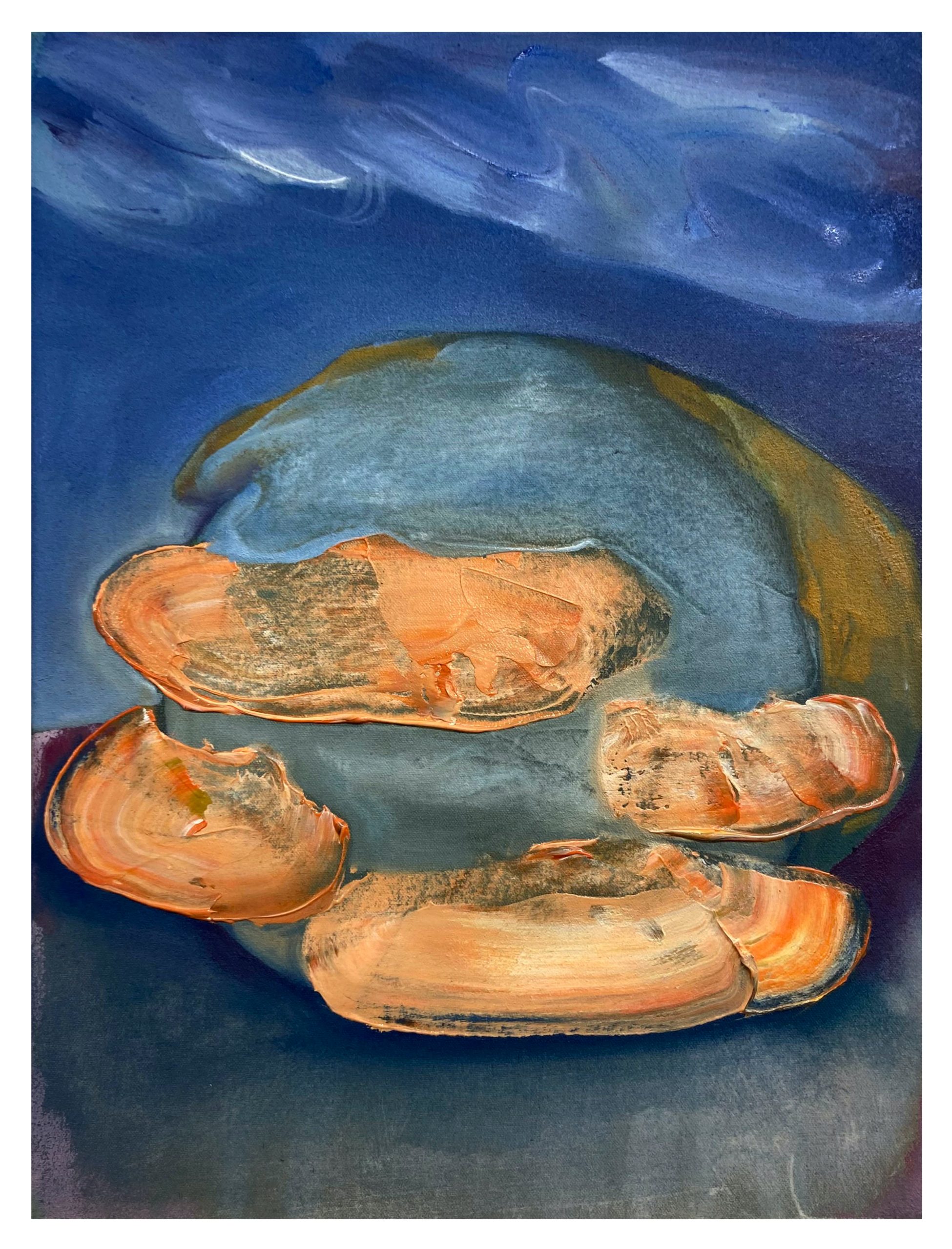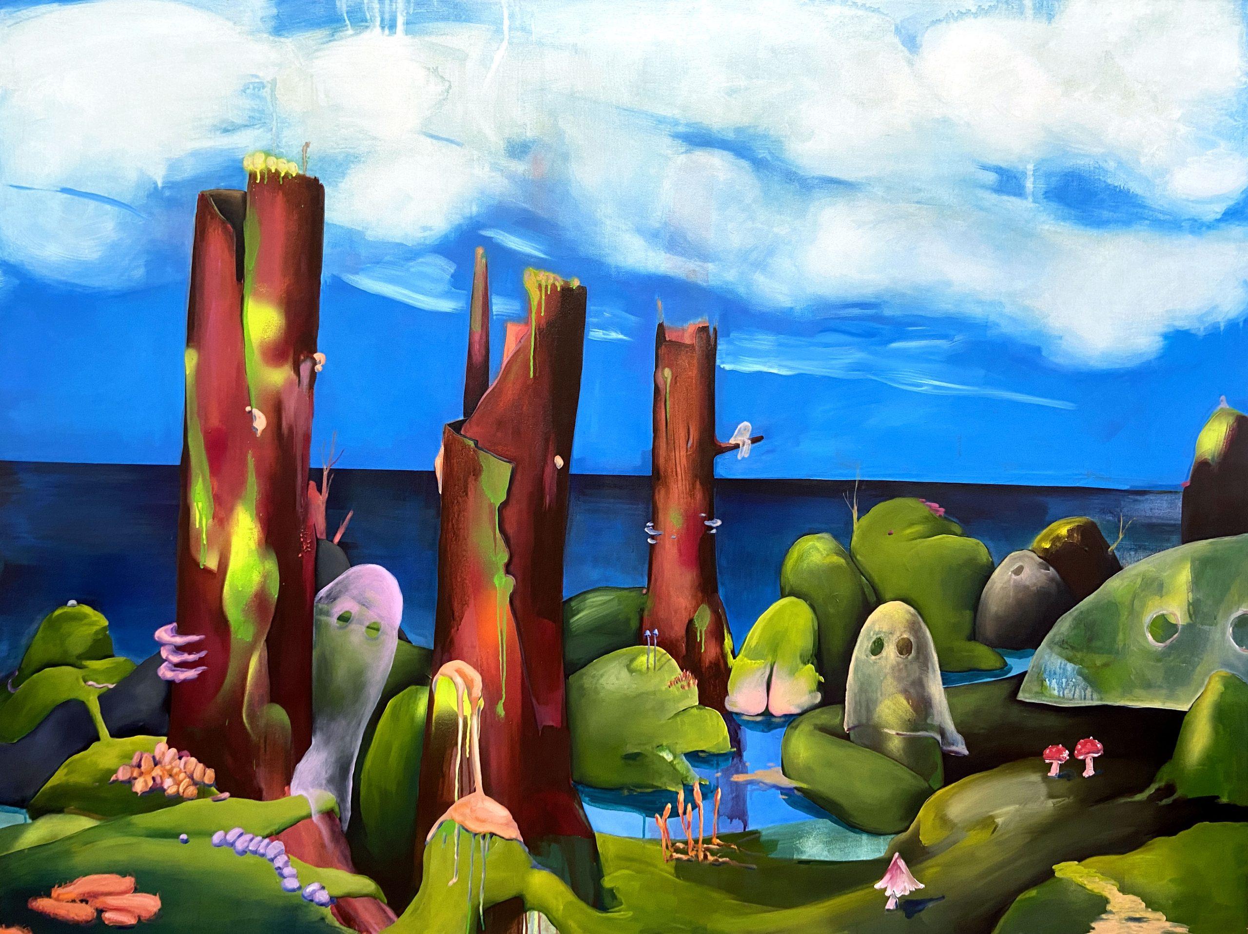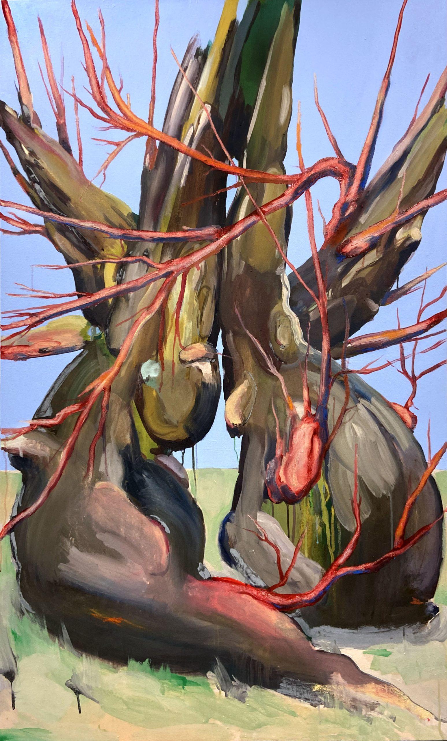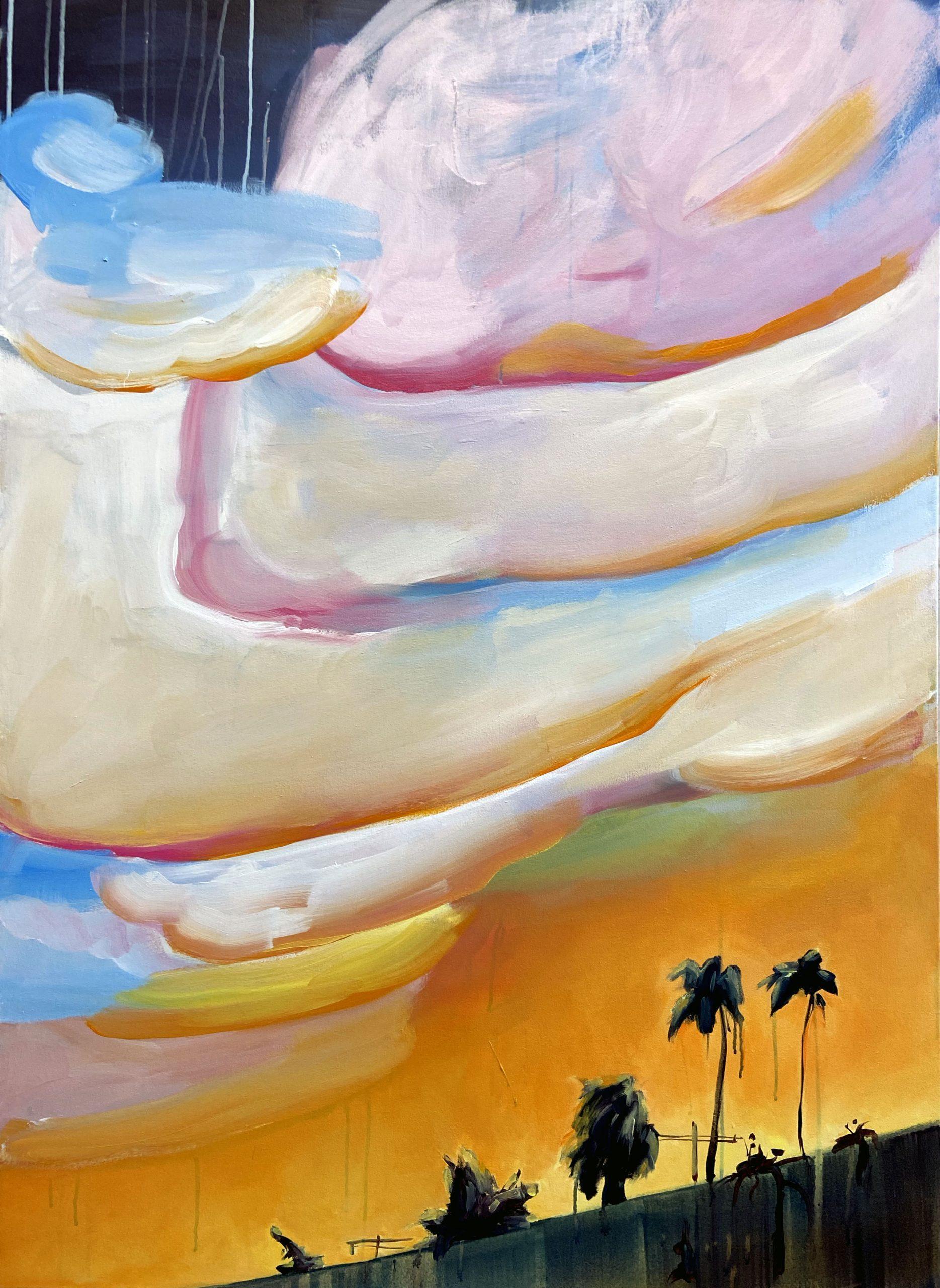 Skies and trees are ongoing themes in my work. Skies are about transience while trees tell a story of steady resilience. Tree stumps are headless figures; embodiments of disruption, but also places where life quietly thrives. Trees elicit memories of home, as well as an aspiration towards rootedness.