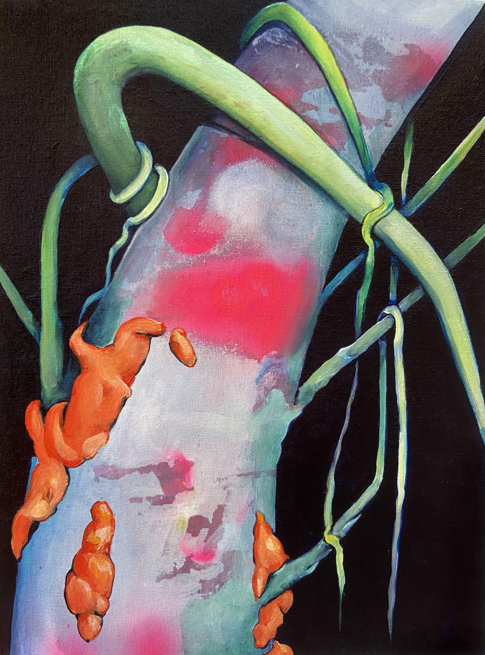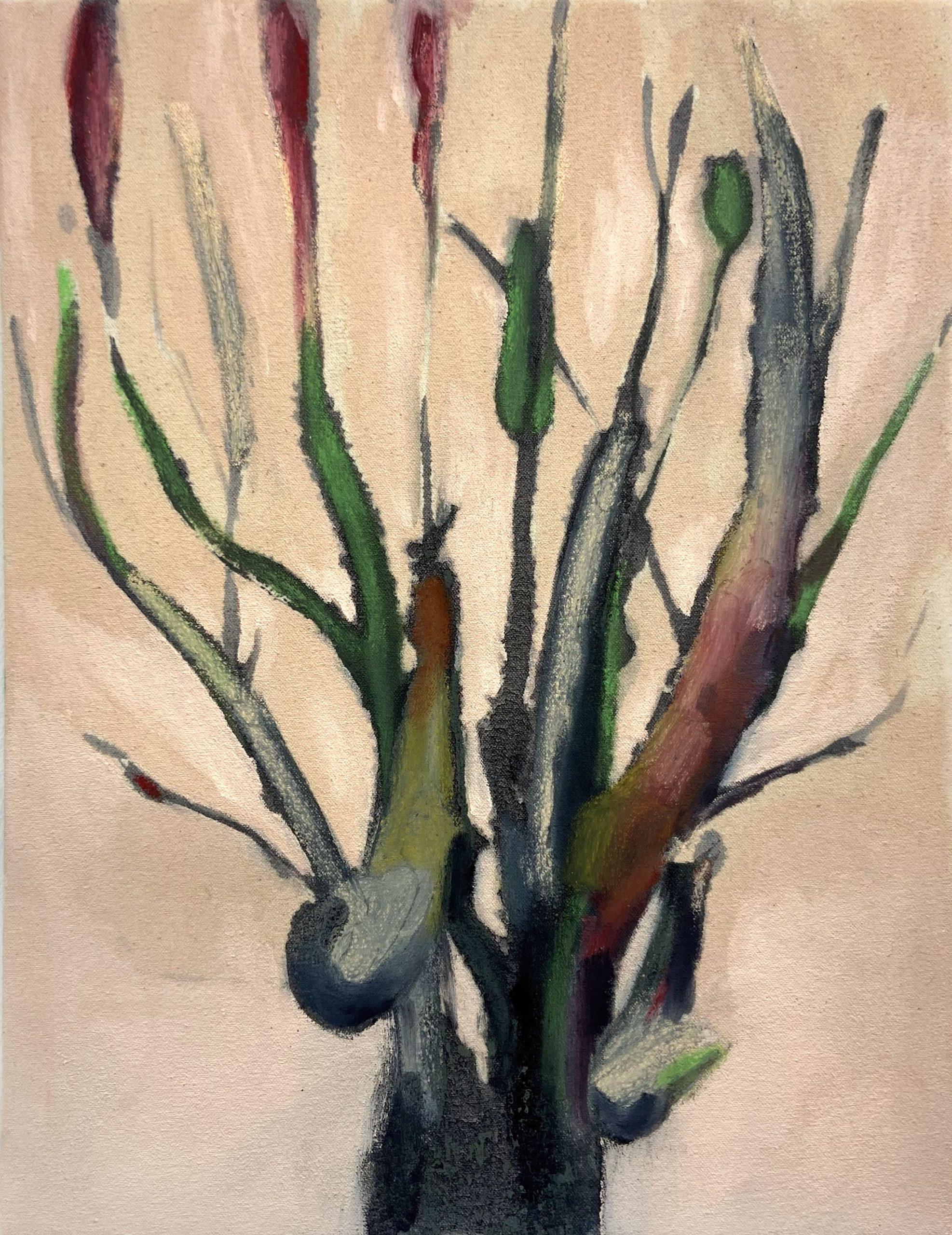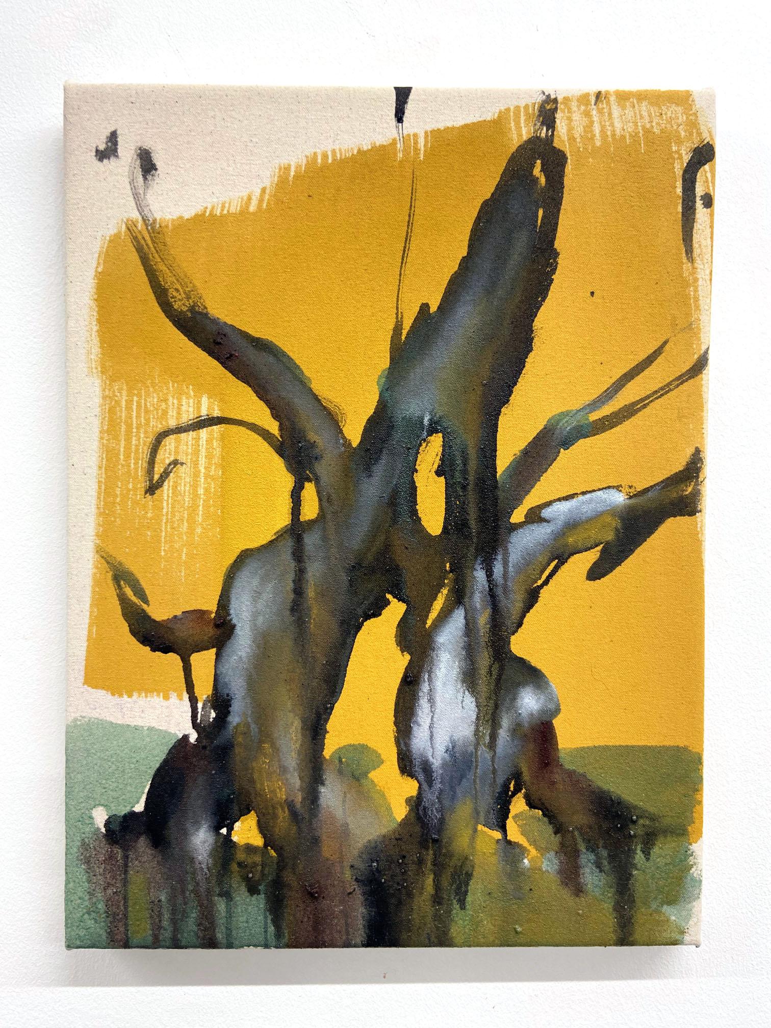 Shes Kind of a Beech, 2024, lutea pigment, linseed oil, oil pastel and acrylic on repurposed canvas, 30x40cm