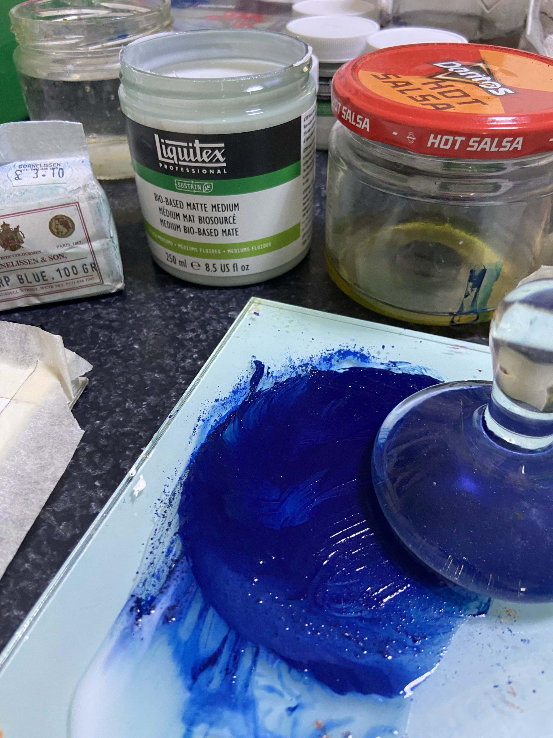 The pots are made from 100% recycled materials and are handy to repurpose for my homemade inks. The matte medium also mixed well with my powder pigments; so this is another alternative to using casein medium.